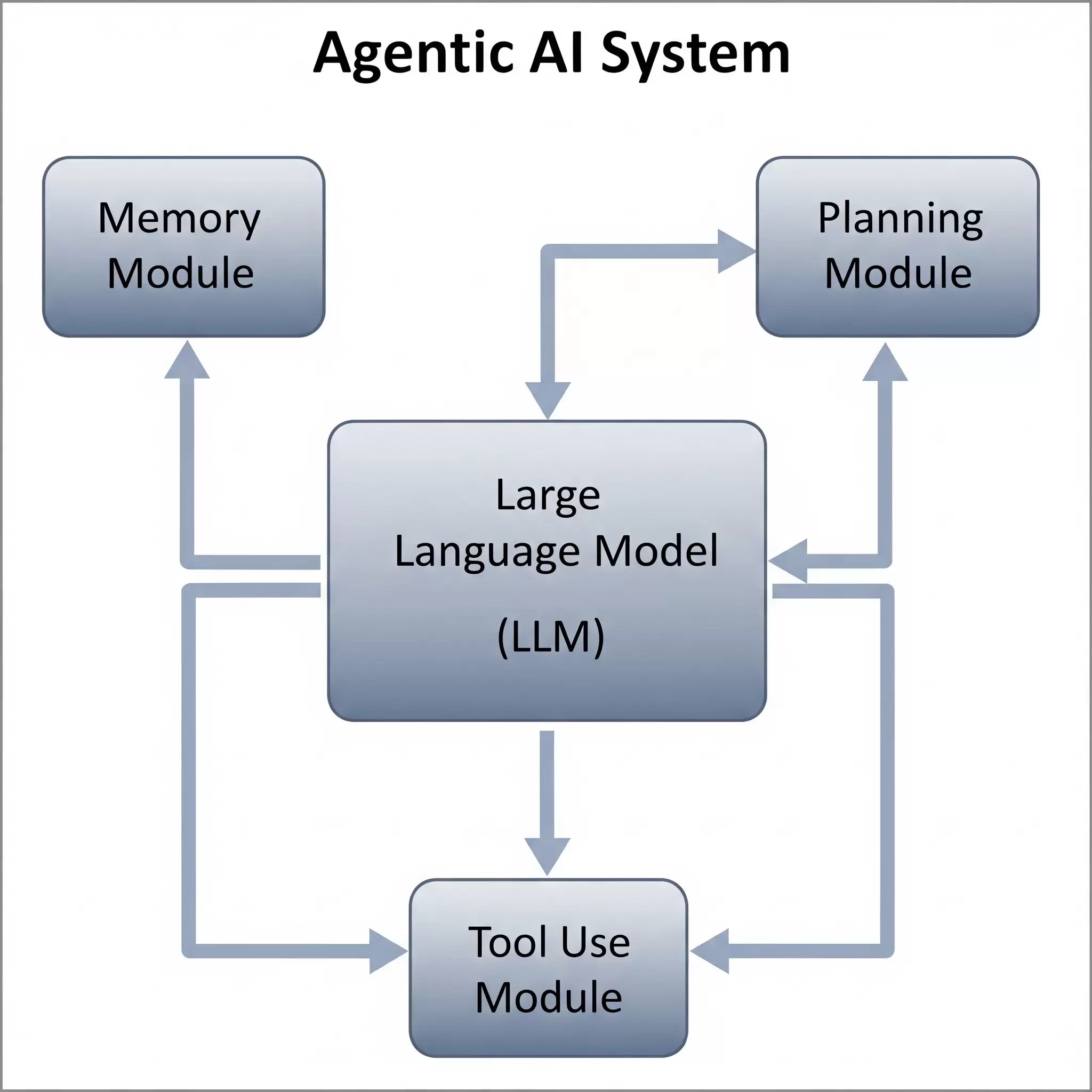 Building Agentic AI requires sophisticated architectures. It’s an architecture built around a core LLM, enabling it to go beyond simple text generation. The key components include:
